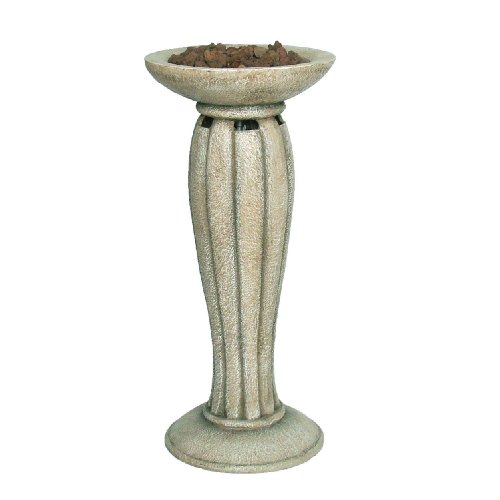 - Decorative outdoor heater with flame, Lava Rock, and sculpted pedestal