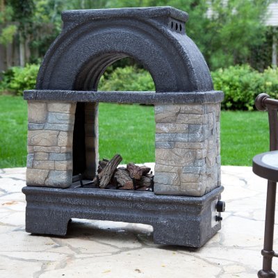 Shop for Outdoor Fire Pits from FirePits.com! Enjoy an evening out with the Burlington LP Outdoor Fireplace. This solid outdoor fireplace provides all the light and heat could you ask for with none of the mess and waste that comes with traditional wood-burning fireplaces. It's sure to become the centerpiece for any backyard barbeque or evening cocktail party. Its unique 2-way design allows guests to sit on both sides of the fireplace for 360 degrees of warmth and light. This faux stone fireplace is constructed from fiber-reinforced materials that are non-toxic and fireproof. It's the perfect marriage of function style and safety. Sure to be a favorite of friends and family for years to come. This fireplace features a push-button igniter and variable temperature control knob and is compatible with all standard-sized propane tanks.Note: propane tank will sit outside and attach to the bottom of the fireplace