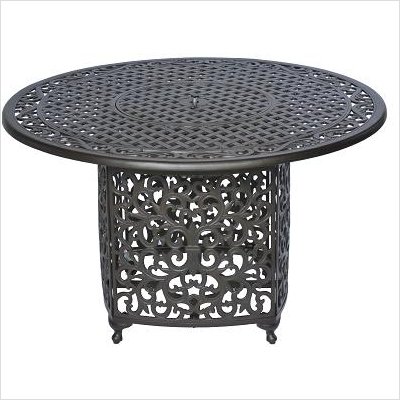 Meadow Decor 2648 An overall exquisite item, the table heater offers hours of comfort for you, your family, and your guest. The 24" high frame now has enough space to house a propane tank, making the unit entirely self contained. Features: -Propane fire pit . -Kingston collection. -Available in Black and Rich Walnut finishes. -Durable cast aluminum frame. -Powder coated finish. -Seats 4-5 people. -Assembly required. -Dimensions: 29" H x 48" W x 48" D.